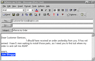 Doreen takes this back to Kathy who calls the customer to explain that the order will be sent as soon as he settles his account.