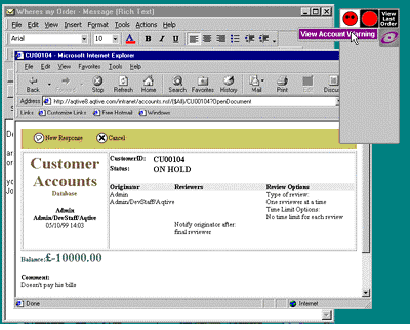Doreen can see the red warning icon and simply double-clicks on it to see what is wrong. She can instantly see the account is on hold and that £10,000 is overdue.